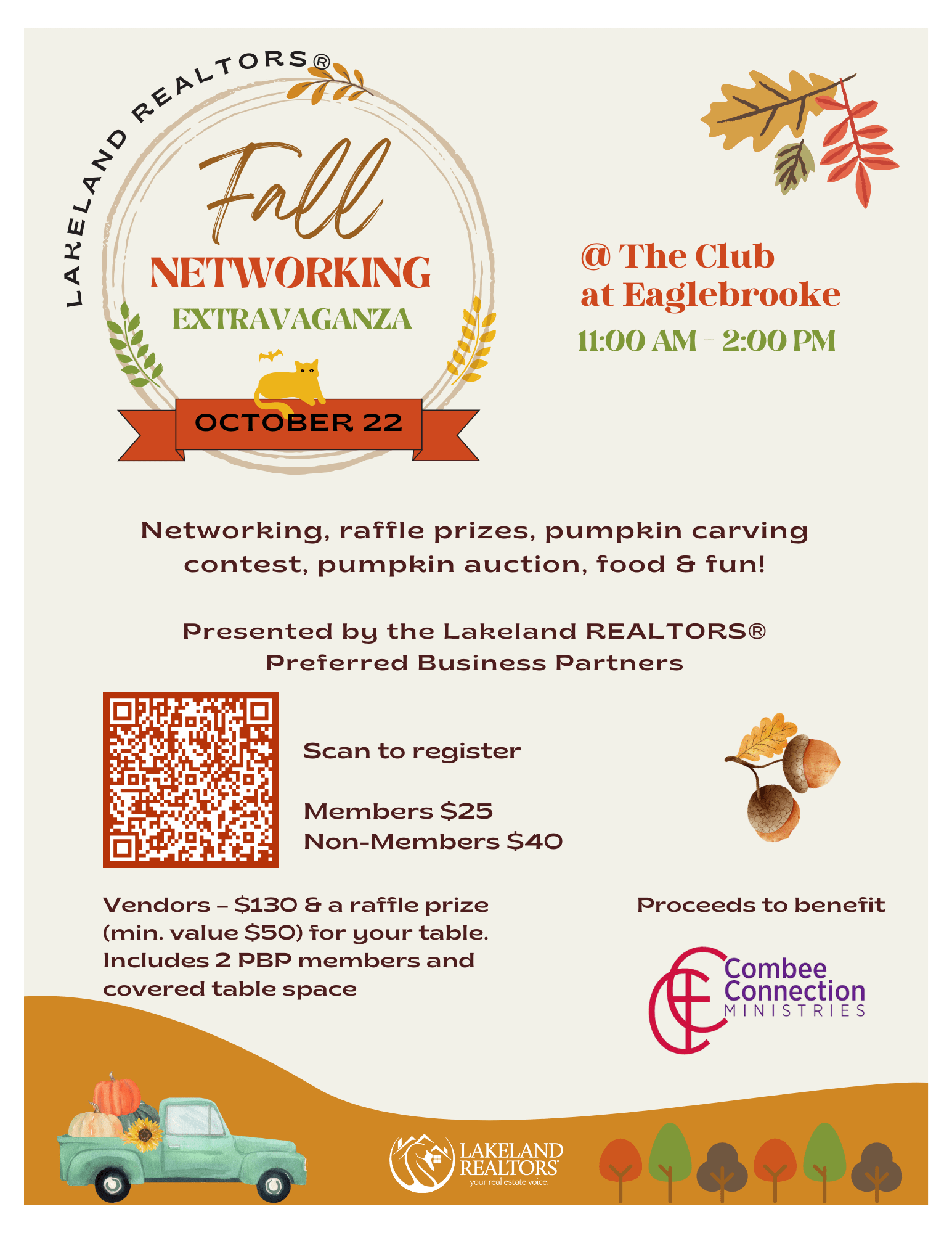 Join us this year for our Annual Fall Networking Extravaganza. The event will include lots of great networking, great raffle prizes, a pumpkin decorating contest, and a live auction featuring all of the decorated pumpkins.